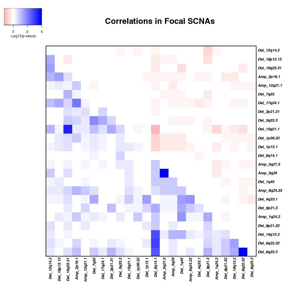 Figure 2. Get High-res Image Co-occurring and mutually-exclusive pairs for copy number variations of focal events. Blue means two events are co-occurring and red means two events are mutually-exclusive.