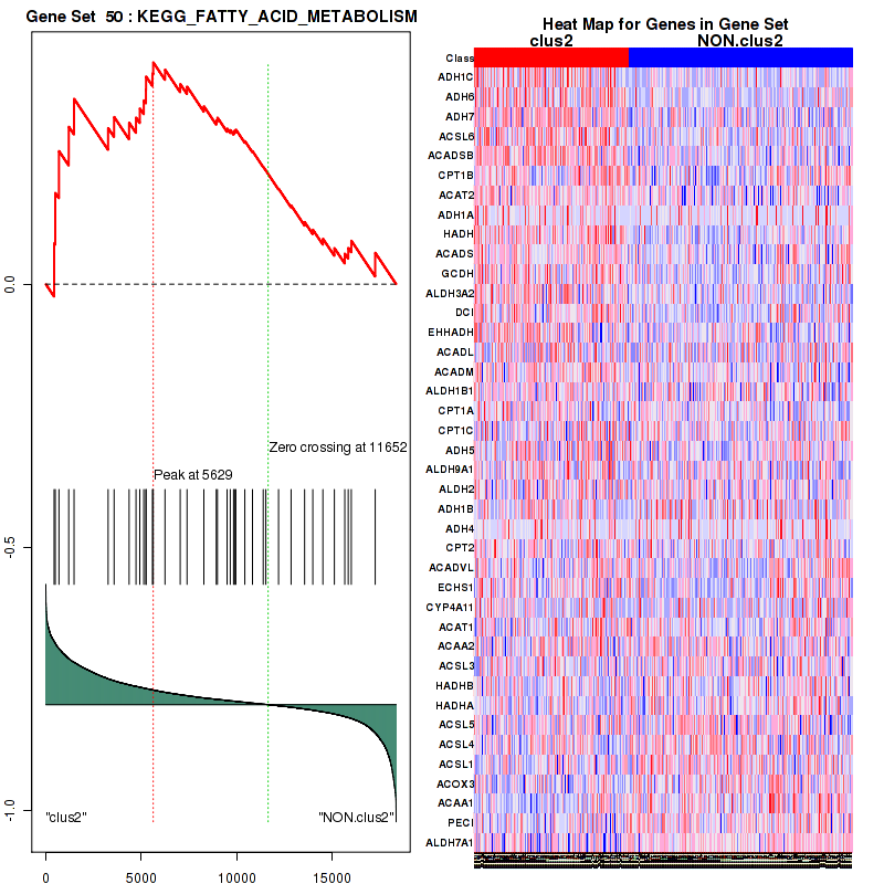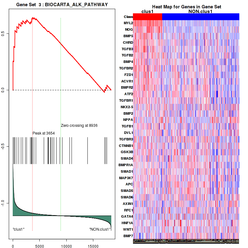 Table S1.  Get Full Table This table shows a Running Enrichment Score (RES) of each gene in this pathway, that is, the enrichment score at this point in the ranked list of genes. All genes are ranked by Signal-to-Noise (S2N), a measure of similarity as default and are used to obtain ES matrix of all genes. In this way, GSEA tool uses expression pattern of not only overlapped genes but also not-overlapped genes to produce ES matrix.
