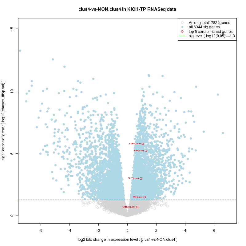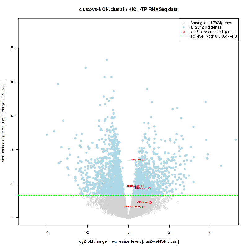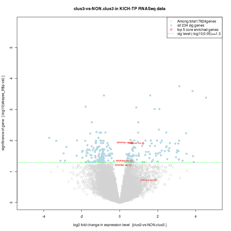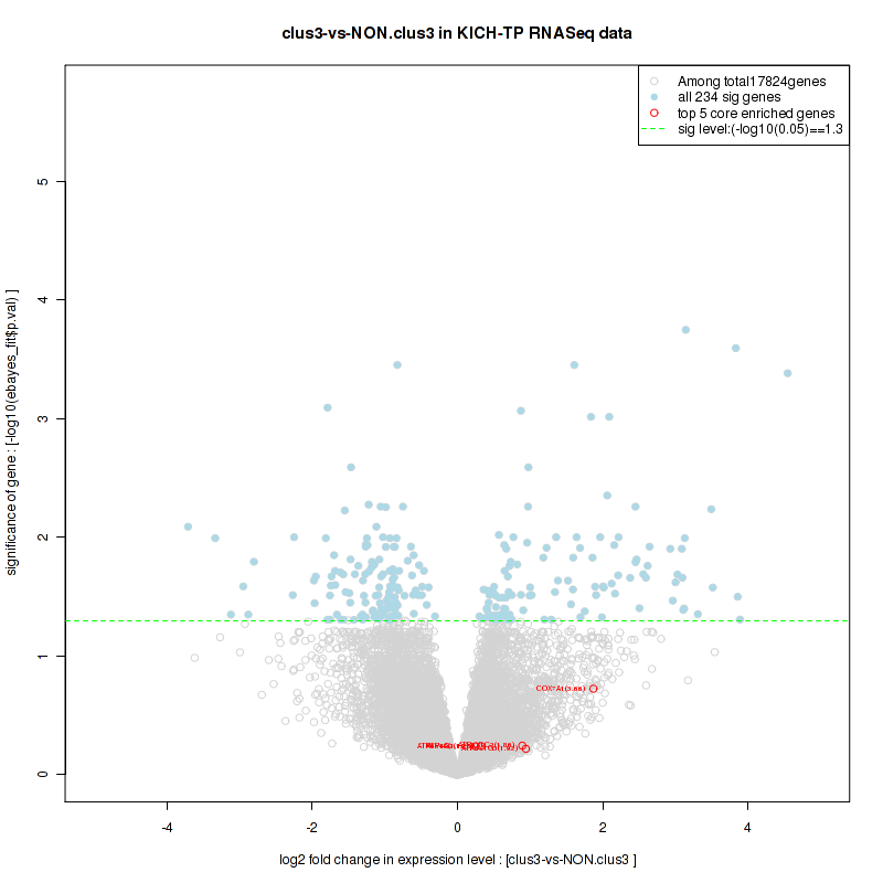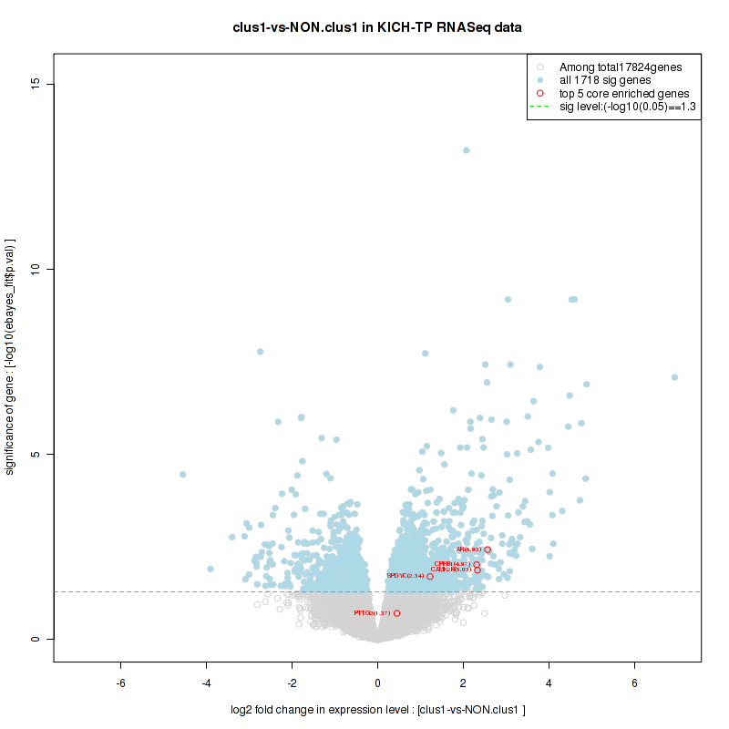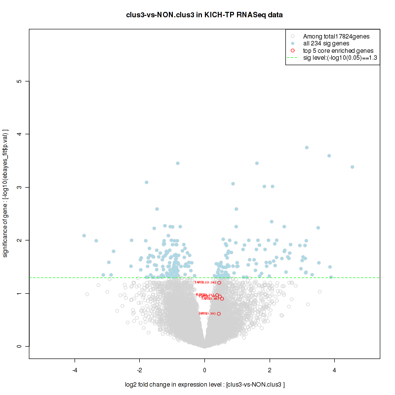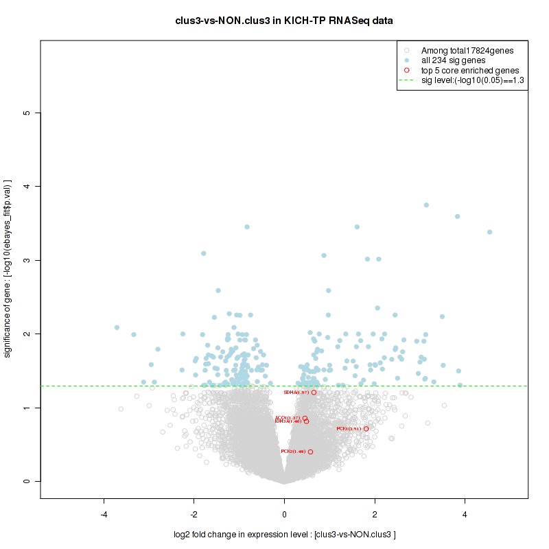 Figure S78. Get High-res Image For the top 5 core enriched genes in the pathway: KEGG GLYCINE SERINE AND THREONINE METABOLISM, this volcano plot shows how much they are up/down-regulated and significant. The significance was calculated by empirical bayesian fit