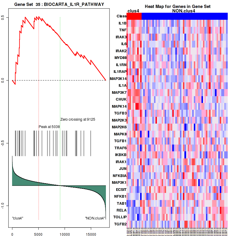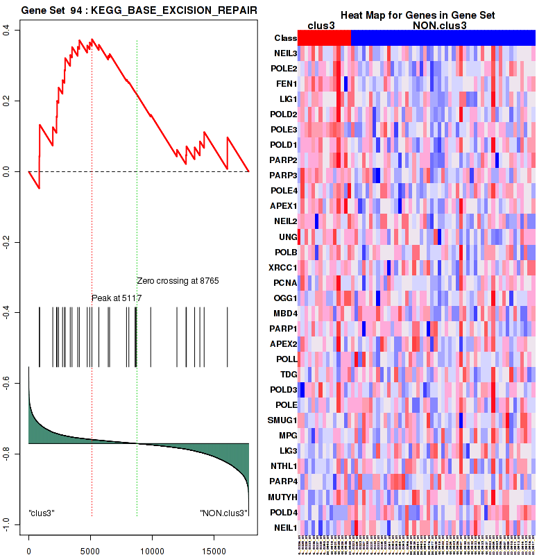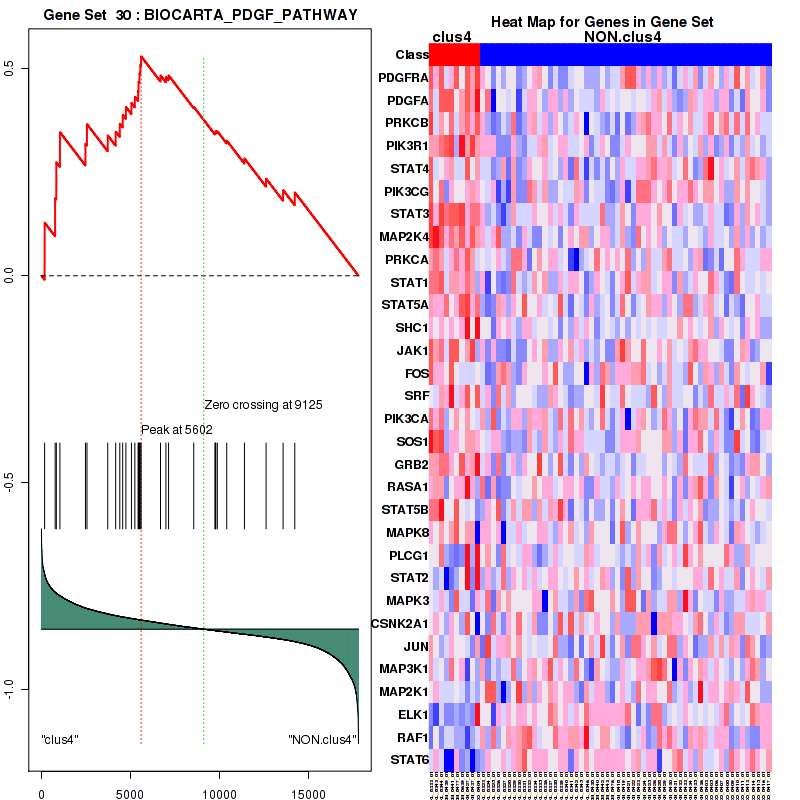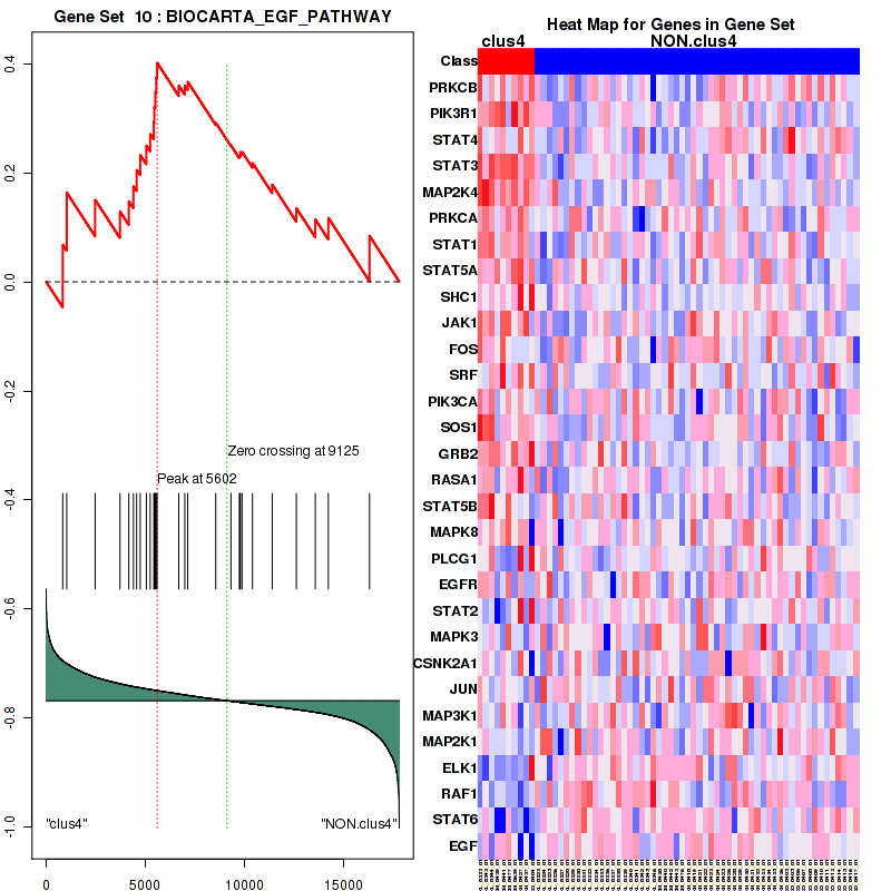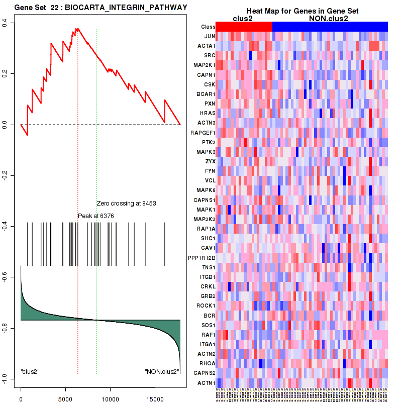 Table S40. Get Full Table This table shows a Running Enrichment Score (RES) of each gene in this pathway, that is, the enrichment score at this point in the ranked list of genes. All genes are ranked by Signal-to-Noise (S2N), a measure of similarity as default and are used to obtain ES matrix of all genes. In this way, GSEA tool uses expression pattern of not only overlapped genes but also not-overlapped genes to produce ES matrix.