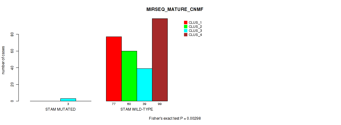 STAM mutation correlated to 'METHLYATION_CNMF' and 'MIRSEQ_MATURE_CNMF'.