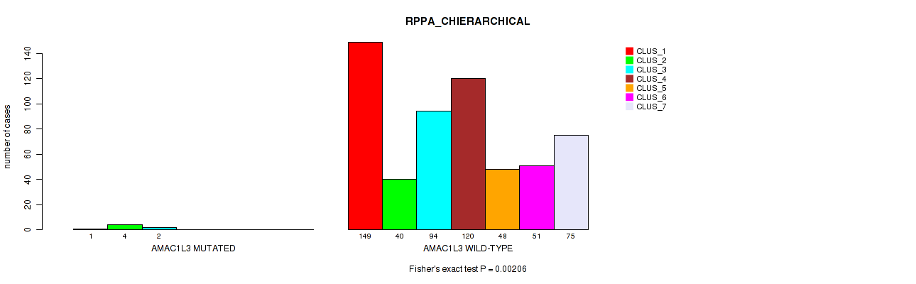 Figure S170. Get High-res Image Gene #55: 'AMAC1L3 MUTATION STATUS' versus Molecular Subtype #6: 'RPPA_CHIERARCHICAL'