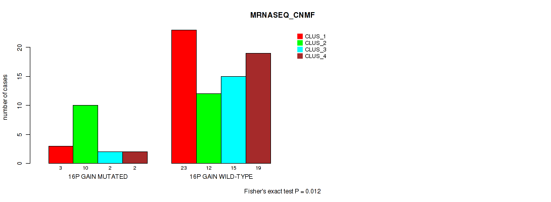 16p gain cnv correlated to 'CN_CNMF' and 'MRNASEQ_CNMF'.
