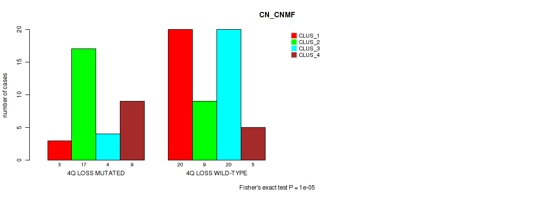 4q loss cnv correlated to 'CN_CNMF', 'MRNASEQ_CNMF', and 'MRNASEQ_CHIERARCHICAL'.