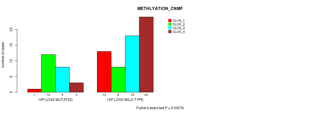 10p loss cnv correlated to 'CN_CNMF' and 'METHLYATION_CNMF'.