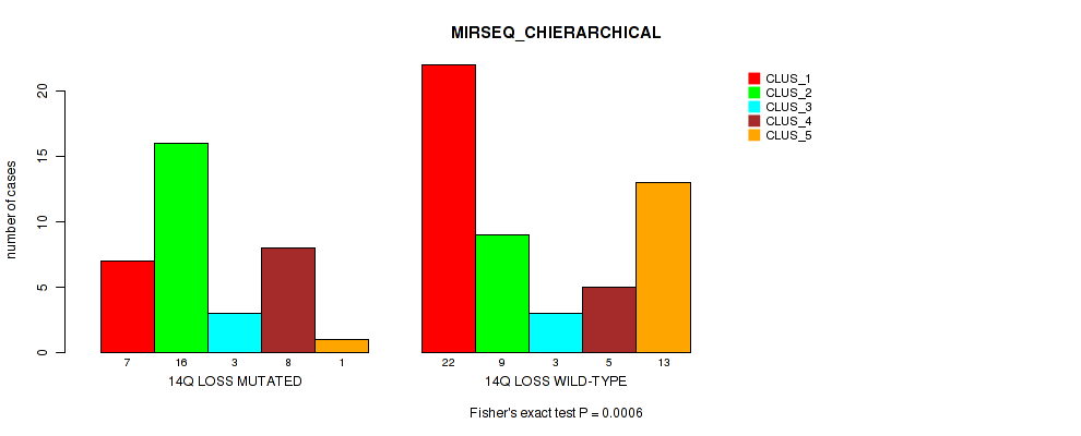 Figure S34. Get High-res Image Gene #59: '14q loss' versus Molecular Subtype #8: 'MIRSEQ_CHIERARCHICAL'