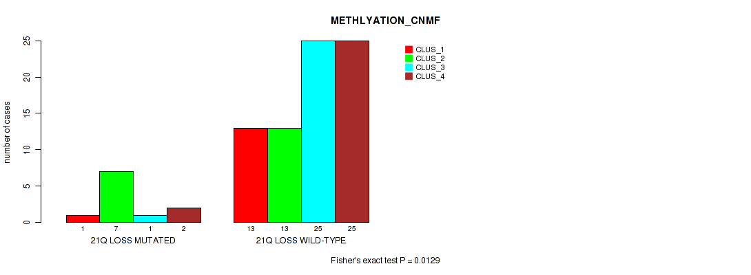21q loss cnv correlated to 'METHLYATION_CNMF'.