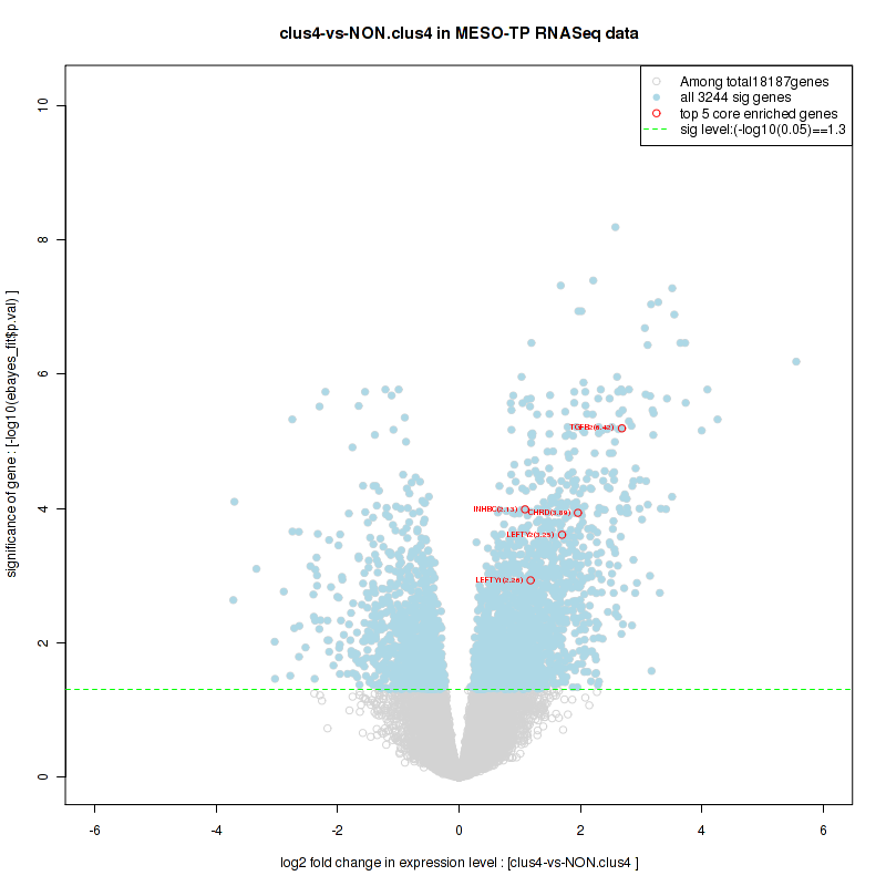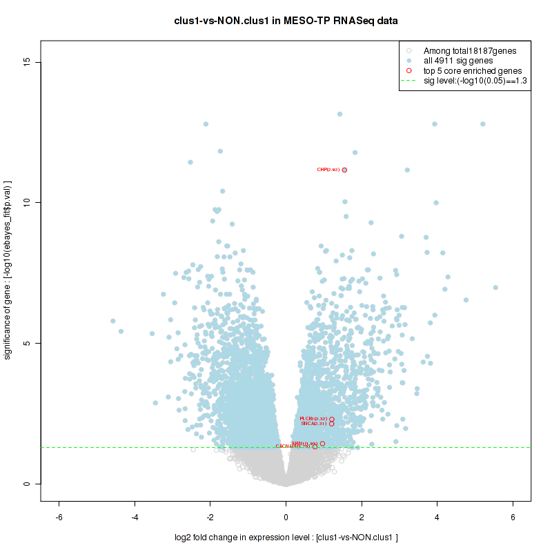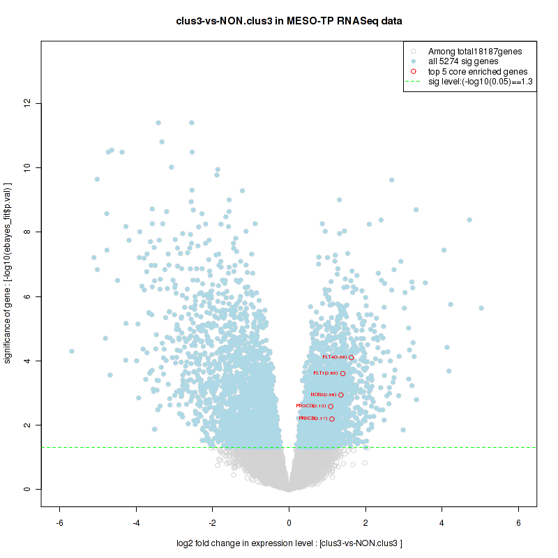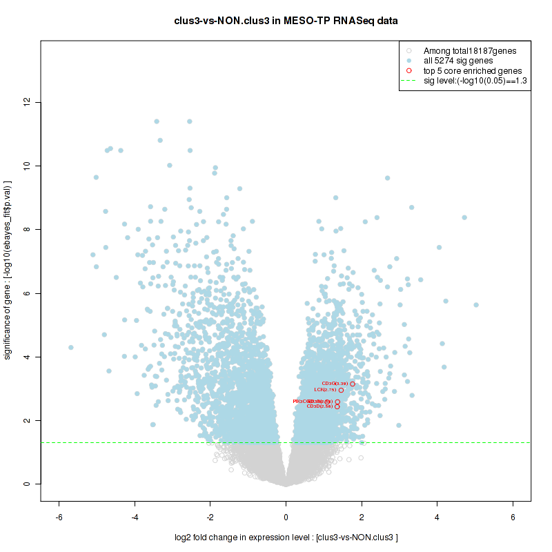 Figure S2. Get High-res Image For the top 5 core enriched genes in the pathway: BIOCARTA DEATH PATHWAY, this volcano plot shows how much they are up/down-regulated and significant. The significance was calculated by empirical bayesian fit