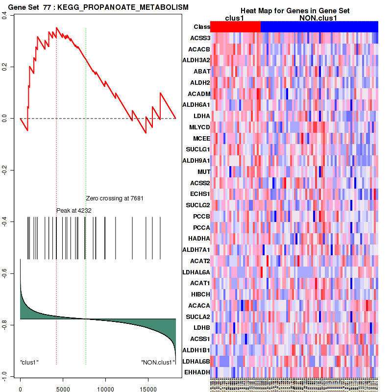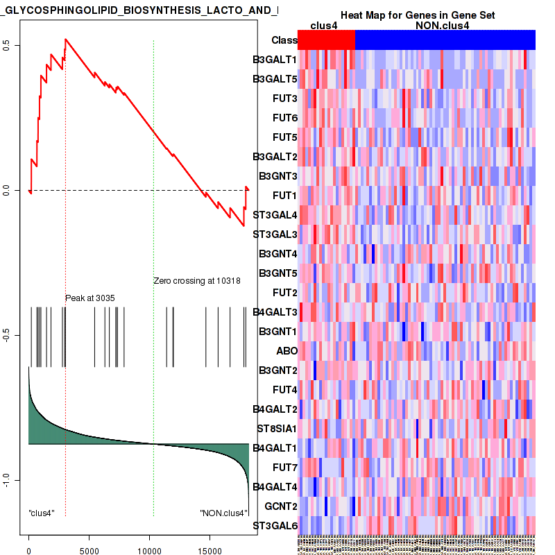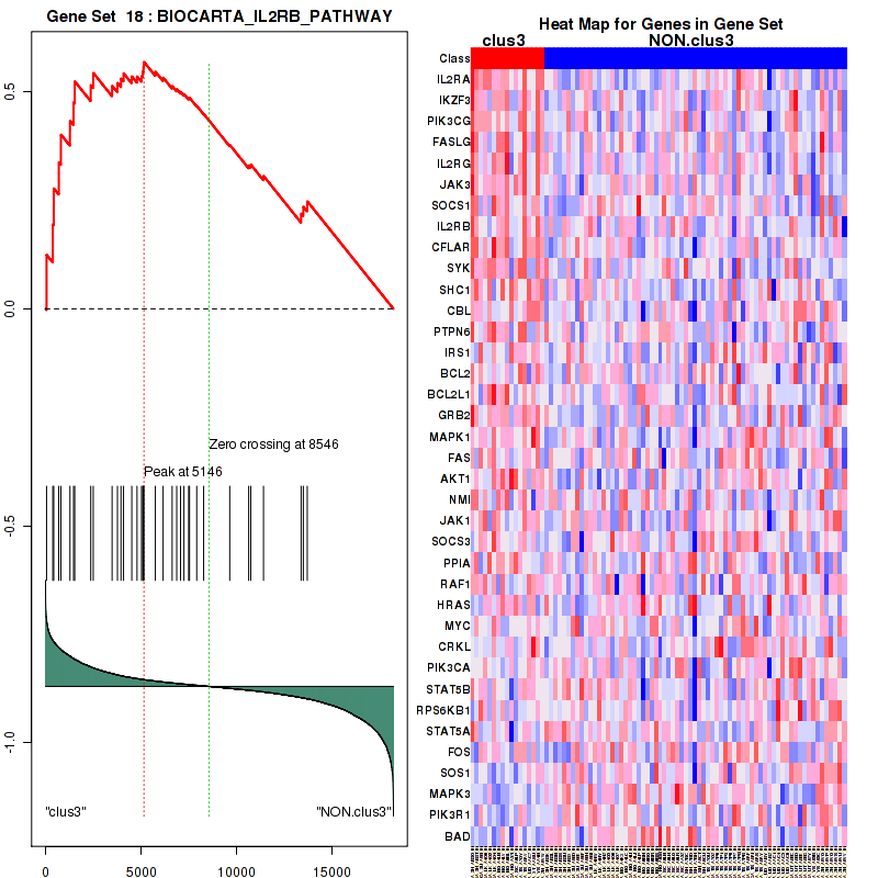 Table S40. Get Full Table This table shows a Running Enrichment Score (RES) of each gene in this pathway, that is, the enrichment score at this point in the ranked list of genes. All genes are ranked by Signal-to-Noise (S2N), a measure of similarity as default and are used to obtain ES matrix of all genes. In this way, GSEA tool uses expression pattern of not only overlapped genes but also not-overlapped genes to produce ES matrix.