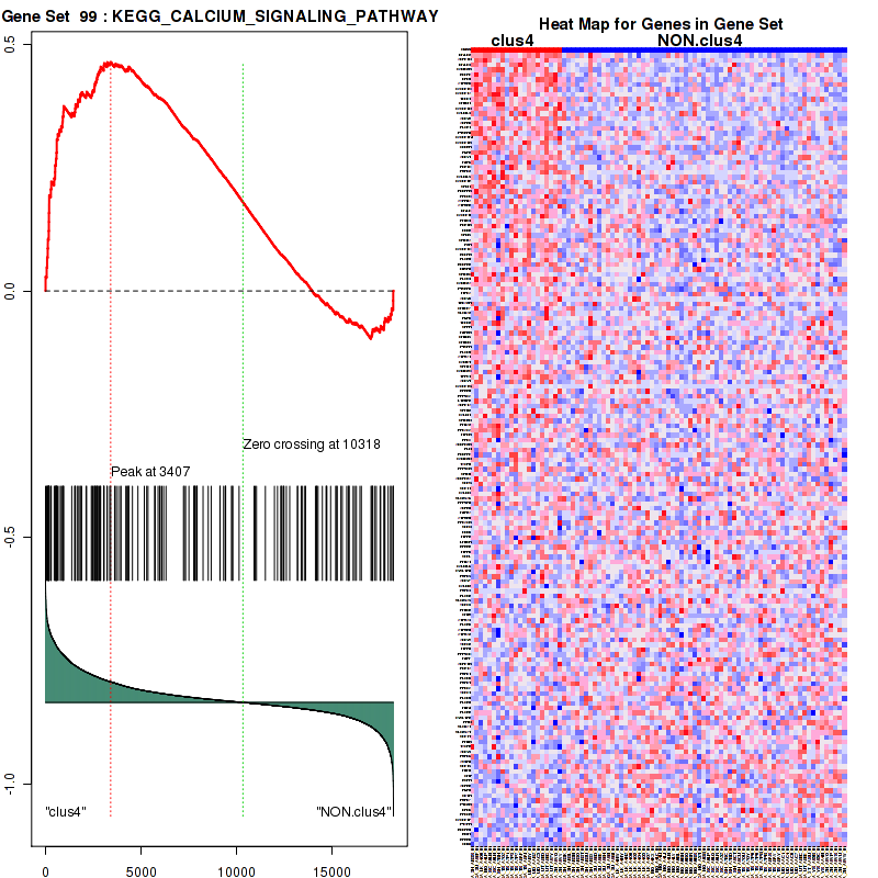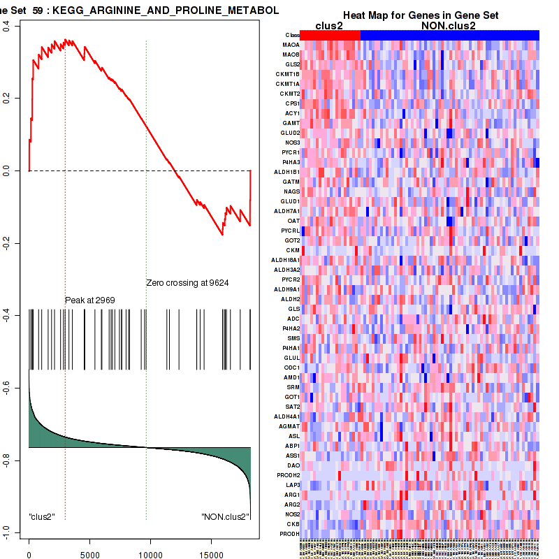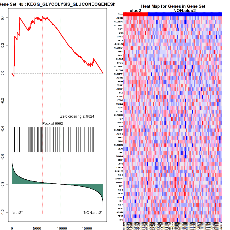 Table S1. Get Full Table This table shows a Running Enrichment Score (RES) of each gene in this pathway, that is, the enrichment score at this point in the ranked list of genes. All genes are ranked by Signal-to-Noise (S2N), a measure of similarity as default and are used to obtain ES matrix of all genes. In this way, GSEA tool uses expression pattern of not only overlapped genes but also not-overlapped genes to produce ES matrix.