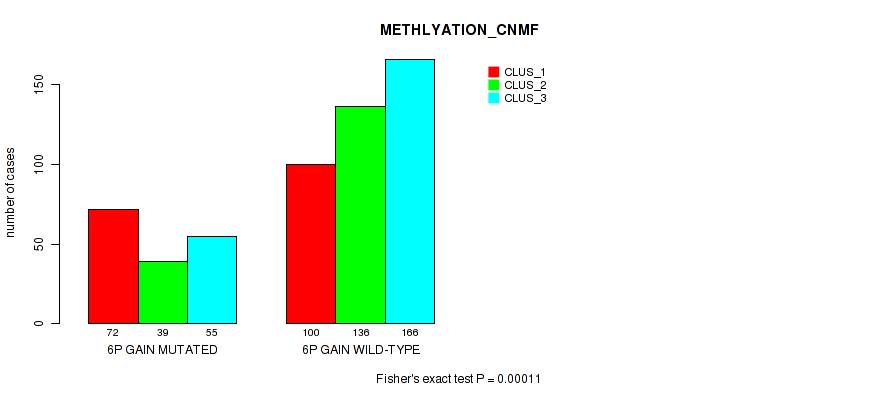 6p gain cnv correlated to 'MRNA_CHIERARCHICAL', 'MIR_CHIERARCHICAL', 'CN_CNMF', 'METHLYATION_CNMF', and 'MRNASEQ_CHIERARCHICAL'.