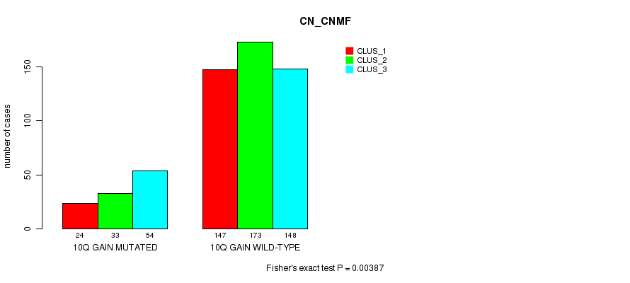 10q loss cnv correlated to 'MIR_CNMF', 'CN_CNMF', and 'METHLYATION_CNMF'.