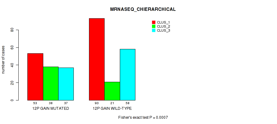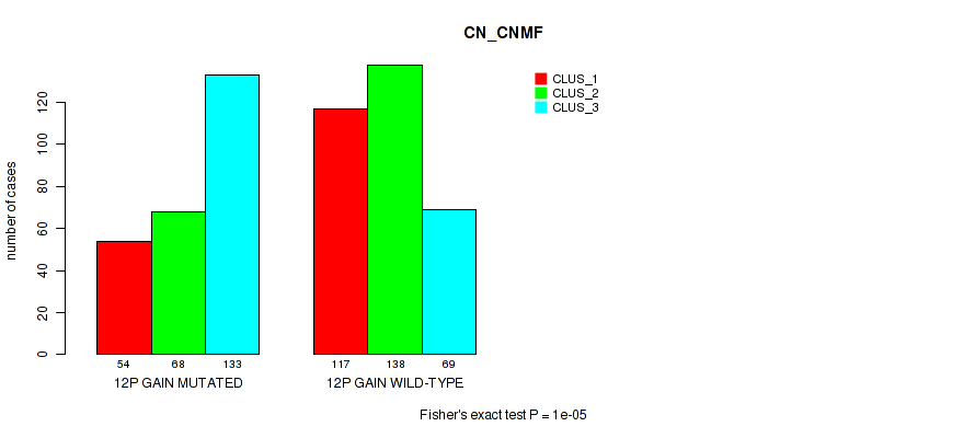 12p gain cnv correlated to 'MRNA_CNMF', 'MRNA_CHIERARCHICAL', 'MIR_CHIERARCHICAL', 'CN_CNMF', 'METHLYATION_CNMF', 'MRNASEQ_CNMF', 'MRNASEQ_CHIERARCHICAL', and 'MIRSEQ_CHIERARCHICAL'.