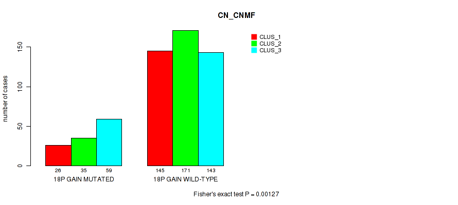 18p gain cnv correlated to 'CN_CNMF' and 'METHLYATION_CNMF'.