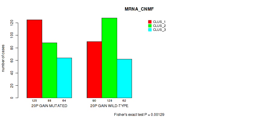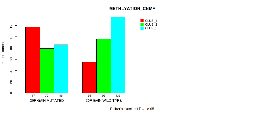 20p gain cnv correlated to 'MRNA_CNMF', 'MRNA_CHIERARCHICAL', 'MIR_CHIERARCHICAL', 'CN_CNMF', 'METHLYATION_CNMF', 'MRNASEQ_CNMF', and 'MIRSEQ_CHIERARCHICAL'.