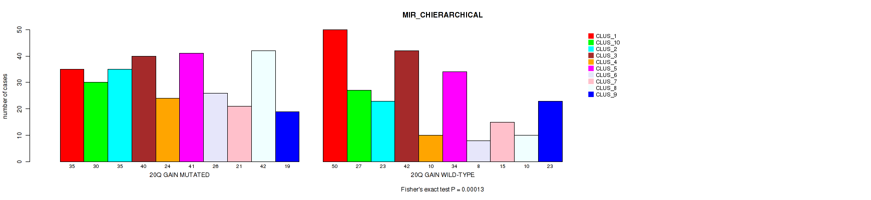 20q gain cnv correlated to 'MRNA_CNMF', 'MRNA_CHIERARCHICAL', 'MIR_CHIERARCHICAL', 'CN_CNMF', 'METHLYATION_CNMF', 'MRNASEQ_CHIERARCHICAL', and 'MIRSEQ_CHIERARCHICAL'.