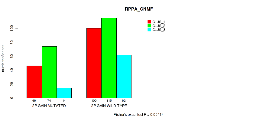 2p gain cnv correlated to 'MRNA_CNMF', 'MRNA_CHIERARCHICAL', 'MIR_CHIERARCHICAL', 'CN_CNMF', 'METHLYATION_CNMF', 'RPPA_CNMF', 'MRNASEQ_CNMF', 'MRNASEQ_CHIERARCHICAL', and 'MIRSEQ_CHIERARCHICAL'.