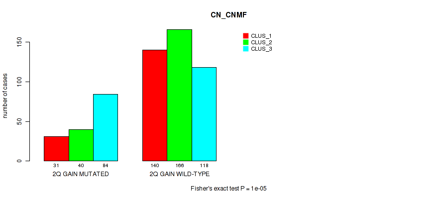 2q gain cnv correlated to 'MRNA_CNMF', 'MRNA_CHIERARCHICAL', 'MIR_CHIERARCHICAL', 'CN_CNMF', 'METHLYATION_CNMF', 'RPPA_CNMF', 'MRNASEQ_CNMF', 'MRNASEQ_CHIERARCHICAL', and 'MIRSEQ_CHIERARCHICAL'.