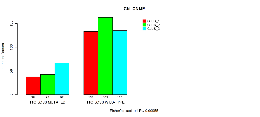 11p loss cnv correlated to 'MRNA_CHIERARCHICAL' and 'METHLYATION_CNMF'.