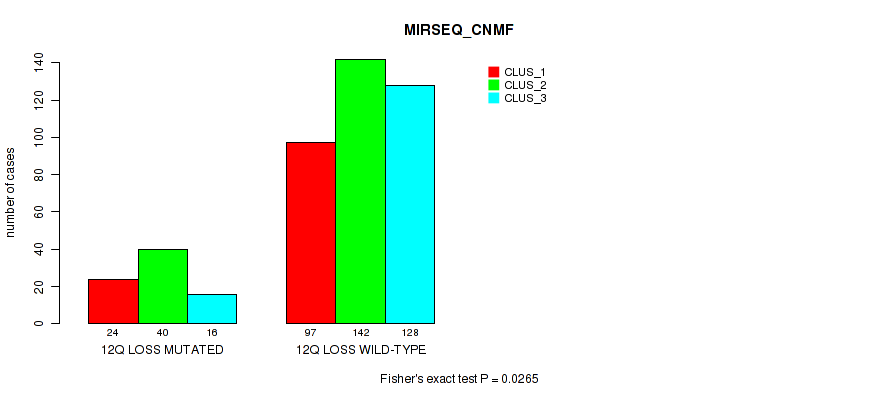 12q loss cnv correlated to 'CN_CNMF', 'MRNASEQ_CHIERARCHICAL', 'MIRSEQ_CNMF', 'MIRSEQ_CHIERARCHICAL', and 'MIRSEQ_MATURE_CHIERARCHICAL'.