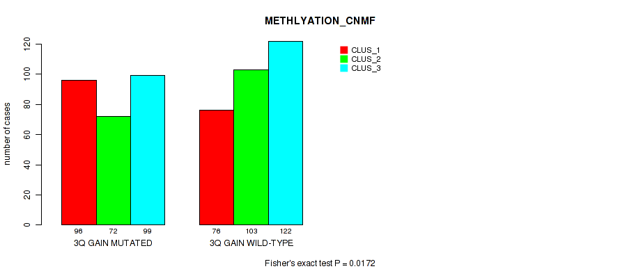 3q gain cnv correlated to 'CN_CNMF' and 'METHLYATION_CNMF'.