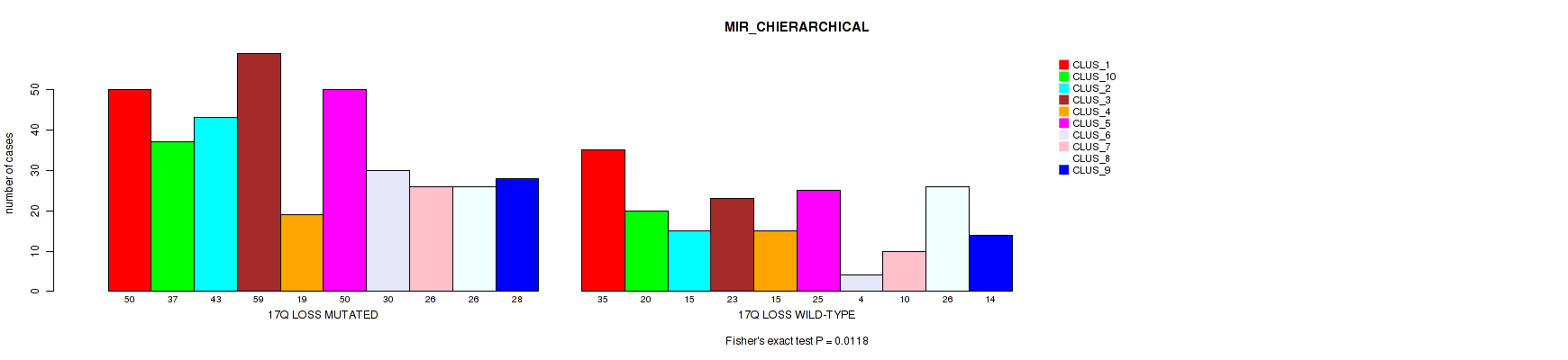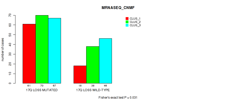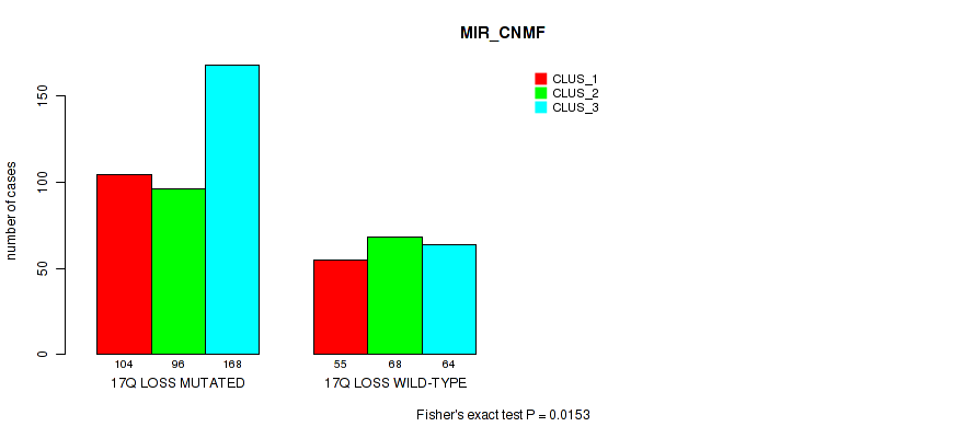 17q loss cnv correlated to 'MRNA_CHIERARCHICAL', 'MIR_CNMF', 'MIR_CHIERARCHICAL', and 'MRNASEQ_CNMF'.