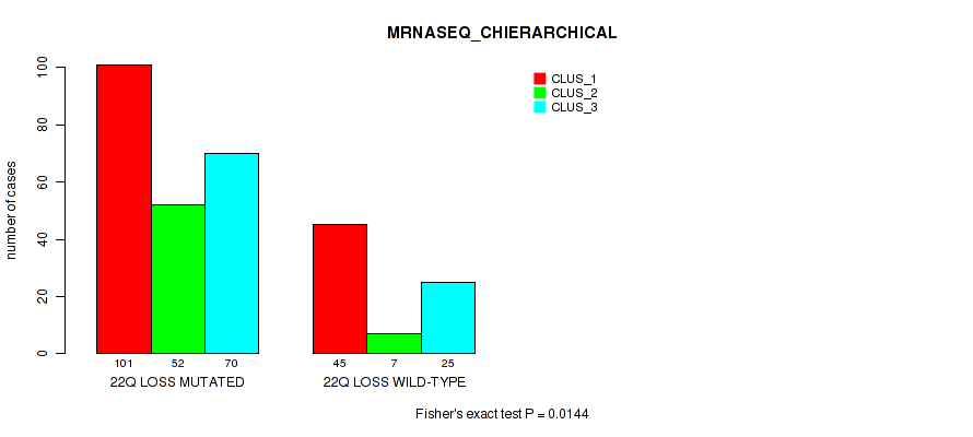 Figure S247. Get High-res Image Gene #80: '22q loss' versus Molecular Subtype #10: 'MRNASEQ_CHIERARCHICAL'