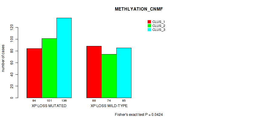 Table S250. Gene #81: 'xp loss' versus Molecular Subtype #6: 'METHLYATION_CNMF'