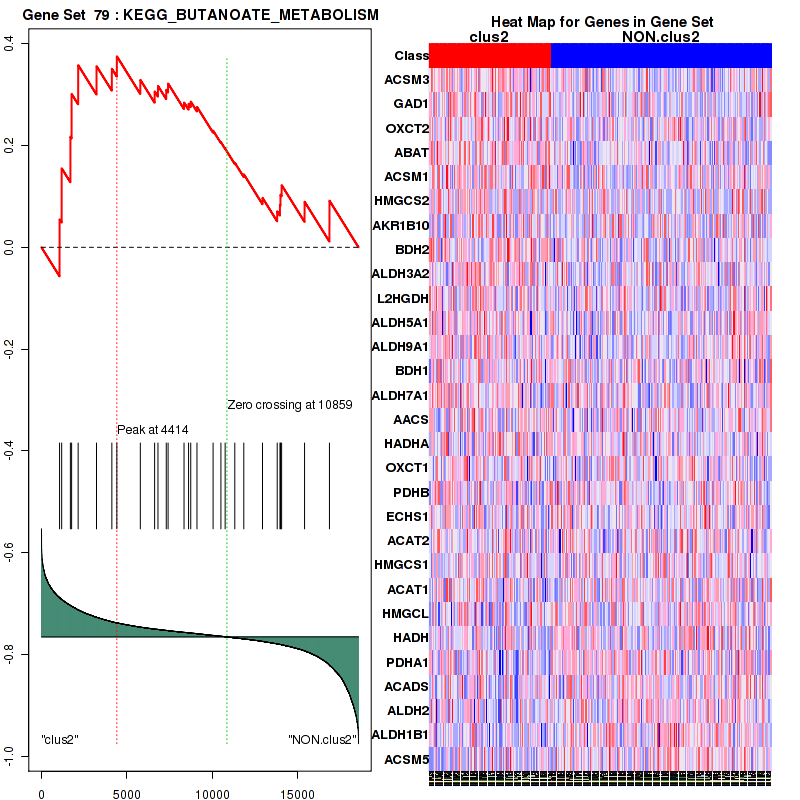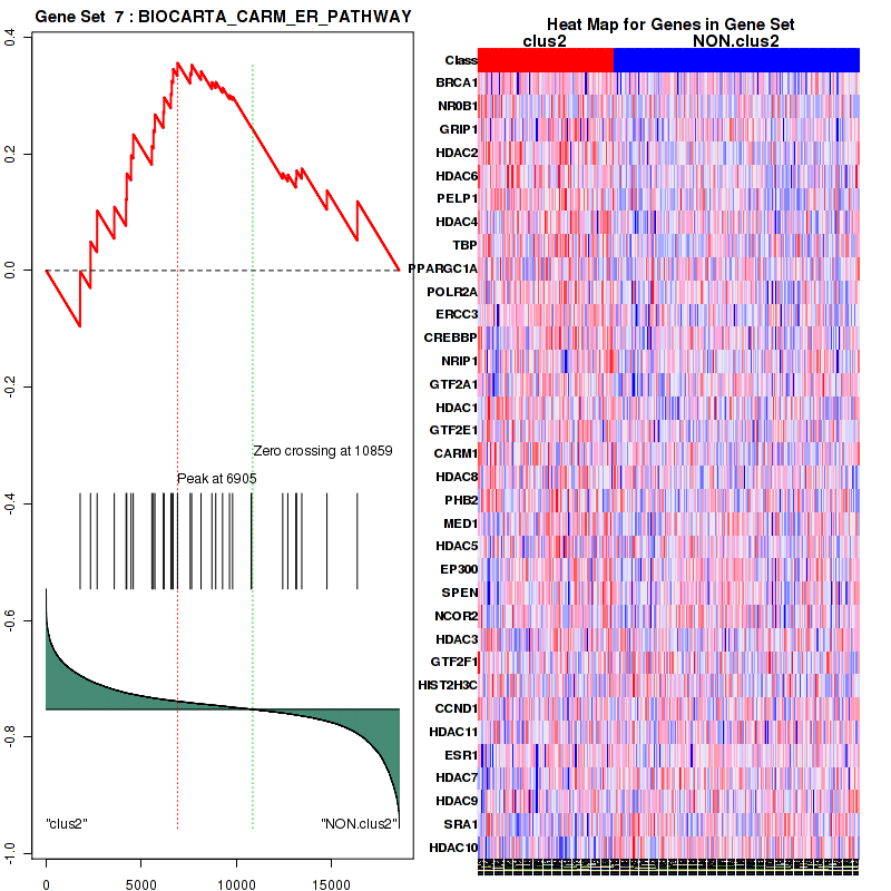 Table S30.  Get Full Table This table shows a Running Enrichment Score (RES) of each gene in this pathway, that is, the enrichment score at this point in the ranked list of genes. All genes are ranked by Signal-to-Noise (S2N), a measure of similarity as default and are used to obtain ES matrix of all genes. In this way, GSEA tool uses expression pattern of not only overlapped genes but also not-overlapped genes to produce ES matrix.
