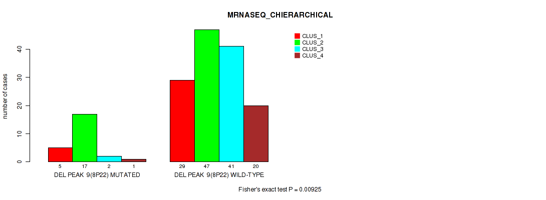 Figure S82. Get High-res Image Gene #27: 'del_22q13.31' versus Molecular Subtype #6: 'MRNASEQ_CHIERARCHICAL'