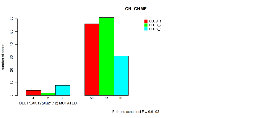 del_9q21.12 cnv correlated to 'CN_CNMF' and 'RPPA_CNMF'.