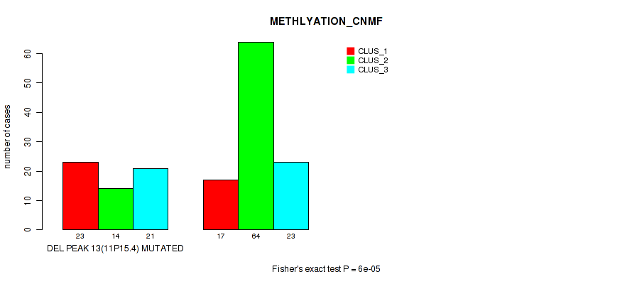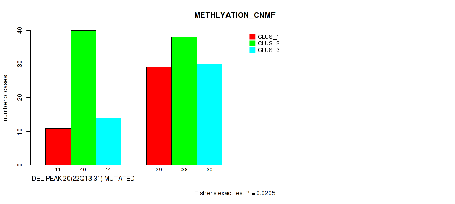 Table S80. Gene #27: 'del_22q13.31' versus Molecular Subtype #2: 'METHLYATION_CNMF'