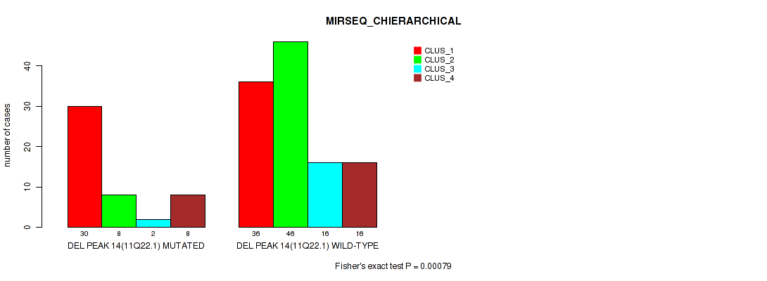 Table S84. Gene #27: 'del_22q13.31' versus Molecular Subtype #8: 'MIRSEQ_CHIERARCHICAL'