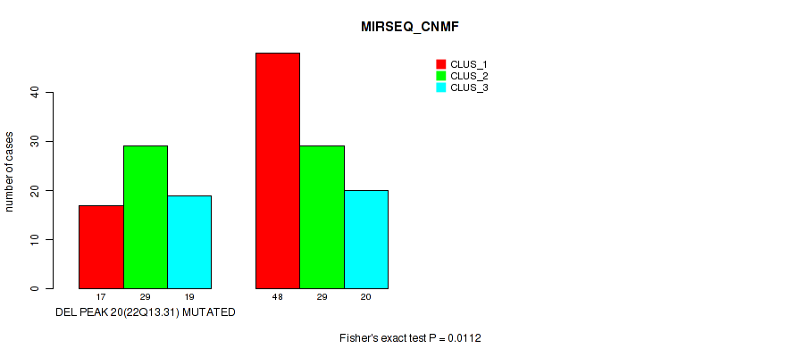 Table S83. Gene #27: 'del_22q13.31' versus Molecular Subtype #7: 'MIRSEQ_CNMF'
