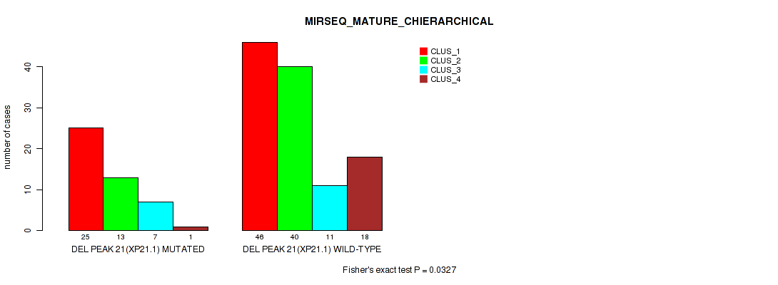 Figure S94. Get High-res Image Gene #28: 'del_xp21.1' versus Molecular Subtype #10: 'MIRSEQ_MATURE_CHIERARCHICAL'