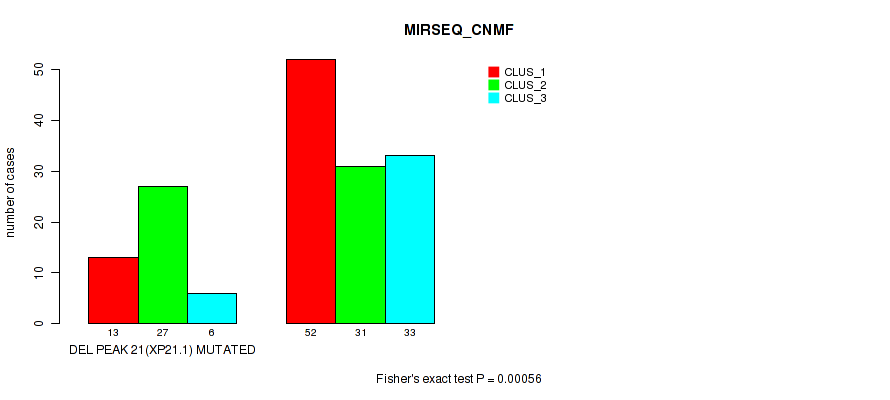 Figure S92. Get High-res Image Gene #28: 'del_xp21.1' versus Molecular Subtype #7: 'MIRSEQ_CNMF'