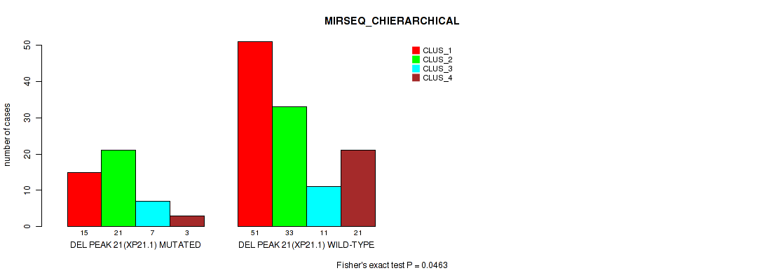 Figure S93. Get High-res Image Gene #28: 'del_xp21.1' versus Molecular Subtype #8: 'MIRSEQ_CHIERARCHICAL'