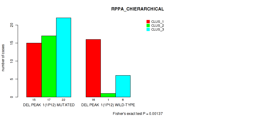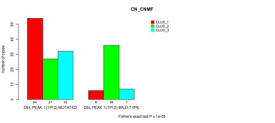 del_1p12 cnv correlated to 'CN_CNMF', 'METHLYATION_CNMF', 'RPPA_CHIERARCHICAL', 'MRNASEQ_CNMF', 'MRNASEQ_CHIERARCHICAL', 'MIRSEQ_CNMF', 'MIRSEQ_CHIERARCHICAL', 'MIRSEQ_MATURE_CNMF', and 'MIRSEQ_MATURE_CHIERARCHICAL'.