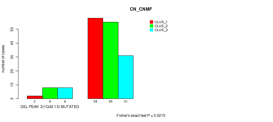 del_1q42.13 cnv correlated to 'CN_CNMF' and 'MRNASEQ_CNMF'.