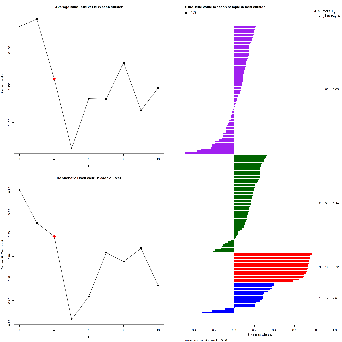 Table 1. Get Full Table List of samples with 4 subtypes and silhouette width.