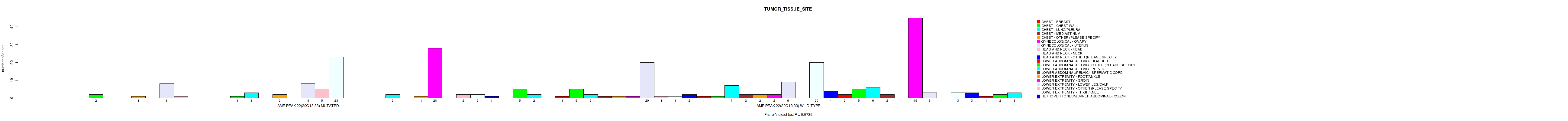del_22q13.32 cnv correlated to 'TUMOR_TISSUE_SITE'.