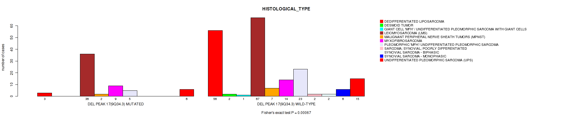 Figure S171. Get High-res Image Gene #62: 'del_21q22.3' versus Clinical Feature #6: 'HISTOLOGICAL_TYPE'