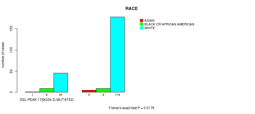 del_9q34.3 cnv correlated to 'HISTOLOGICAL_TYPE', 'RESIDUAL_TUMOR', and 'RACE'.