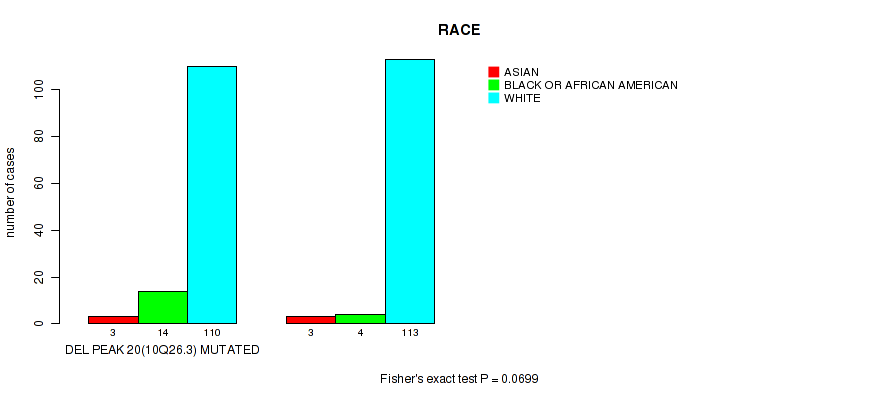 del_10q26.3 cnv correlated to 'YEARS_TO_BIRTH', 'HISTOLOGICAL_TYPE', and 'RACE'.