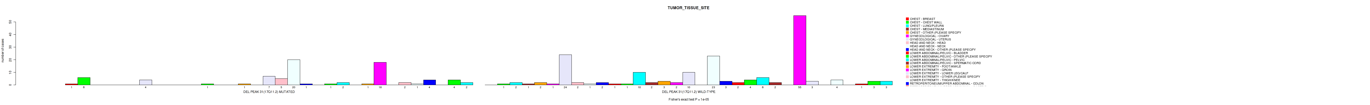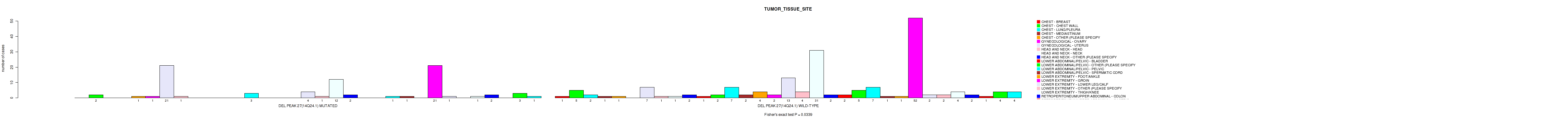 del_14q24.1 cnv correlated to 'TUMOR_TISSUE_SITE'.