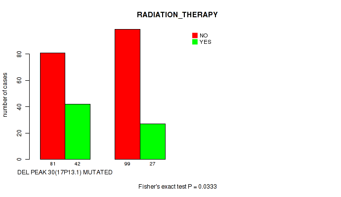 Figure S167. Get High-res Image Gene #60: 'del_19q13.43' versus Clinical Feature #5: 'RADIATION_THERAPY'