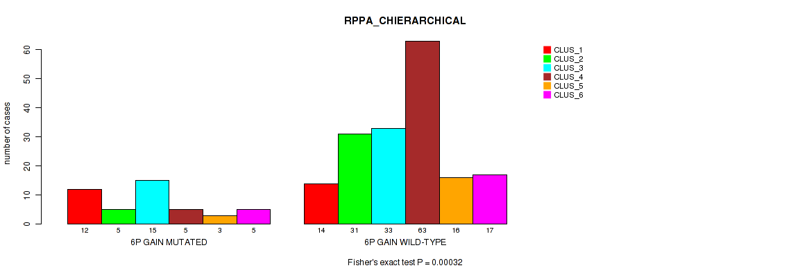 6p gain cnv correlated to 'CN_CNMF', 'METHLYATION_CNMF', 'RPPA_CNMF', 'RPPA_CHIERARCHICAL', 'MRNASEQ_CNMF', 'MRNASEQ_CHIERARCHICAL', 'MIRSEQ_CHIERARCHICAL', and 'MIRSEQ_MATURE_CHIERARCHICAL'.