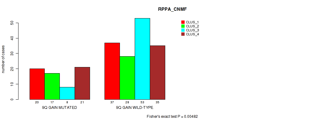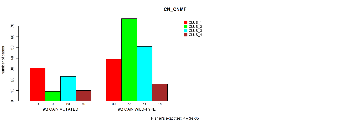 9p gain cnv correlated to 'CN_CNMF', 'METHLYATION_CNMF', 'RPPA_CNMF', 'RPPA_CHIERARCHICAL', 'MRNASEQ_CNMF', 'MRNASEQ_CHIERARCHICAL', and 'MIRSEQ_CHIERARCHICAL'.