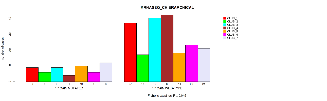 1p gain cnv correlated to 'CN_CNMF', 'METHLYATION_CNMF', and 'MRNASEQ_CHIERARCHICAL'.