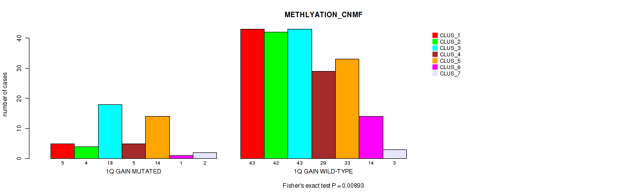 1q gain cnv correlated to 'CN_CNMF', 'METHLYATION_CNMF', 'RPPA_CHIERARCHICAL', 'MRNASEQ_CNMF', 'MIRSEQ_CNMF', 'MIRSEQ_MATURE_CNMF', and 'MIRSEQ_MATURE_CHIERARCHICAL'.